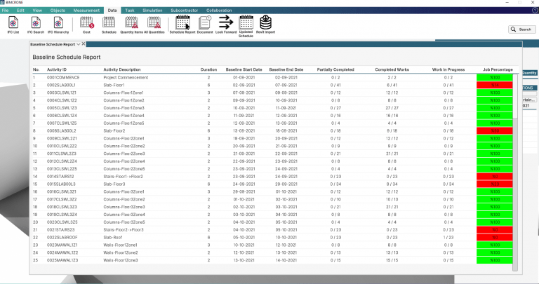 - Link schedule to 3D model and simulate it to visualize the workflow in your project